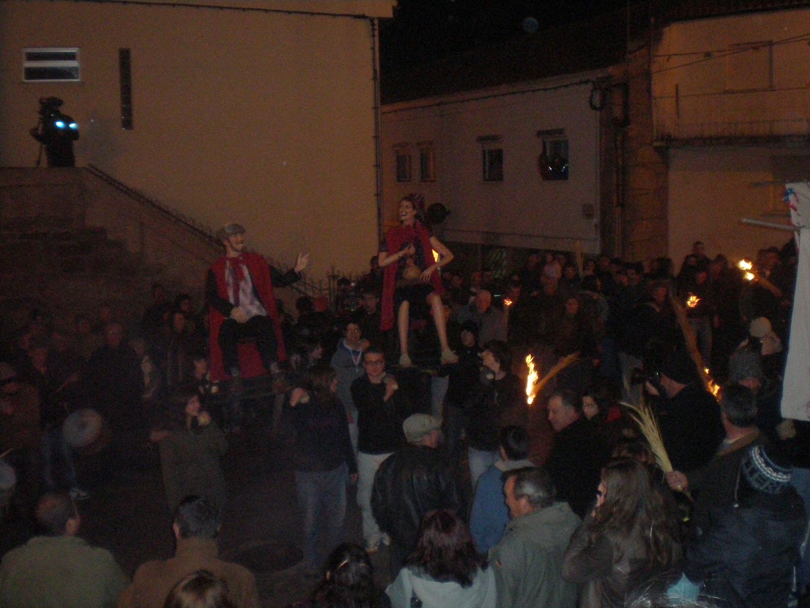 Aqui começa a "procissão" da Santa Bebiana, com o padre(?) a dirigir as operações, perante o olhar incrédulo do Carlos e da Fernanda!