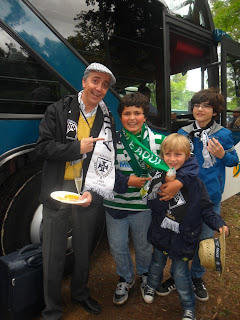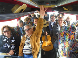 No regresso a Coimbra, a Tuna Meliches no autocarro canta «Nossa Briosa», cântico da claque da Académica, Mancha Negra: